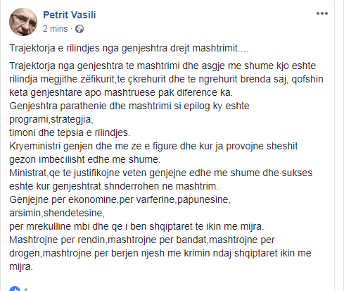 Sipas tij, edhe ministrat gënjejnë për ekonominë, për varfërinë, papunësinë, arsimin dhe trajektorja shkon nga gënjeshtra tek mashtrimi.